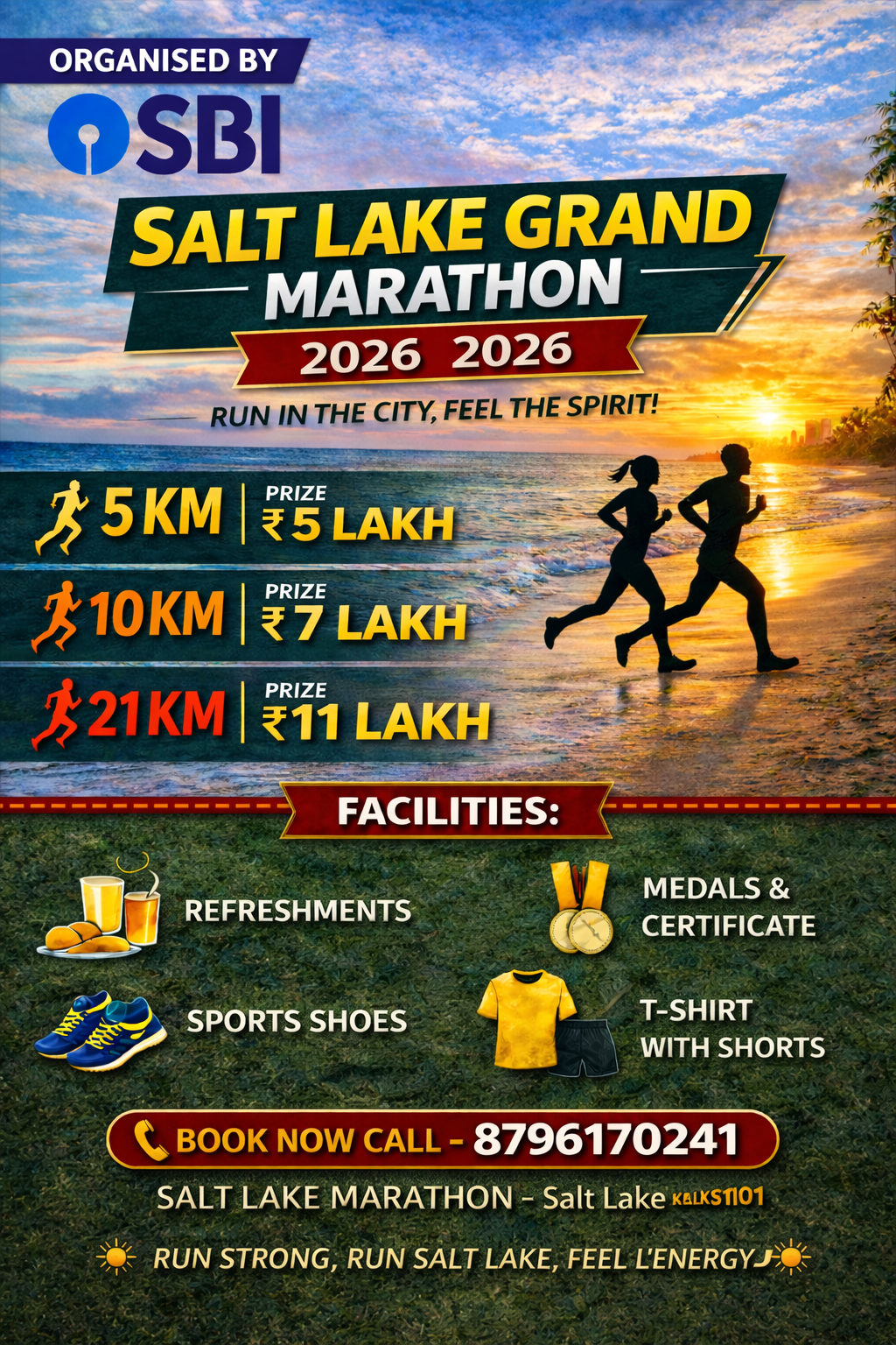 Salt Lake Grand Marathon 2026 is a premier running event set amidst the vibrant city environment of Salt Lake, featuring refreshing early morning views along the wide and scenic roads of Kolkata. Designed to promote fitness, environmental awareness, and community participation, the marathon offers a unique and energetic experience for runners of all levels.